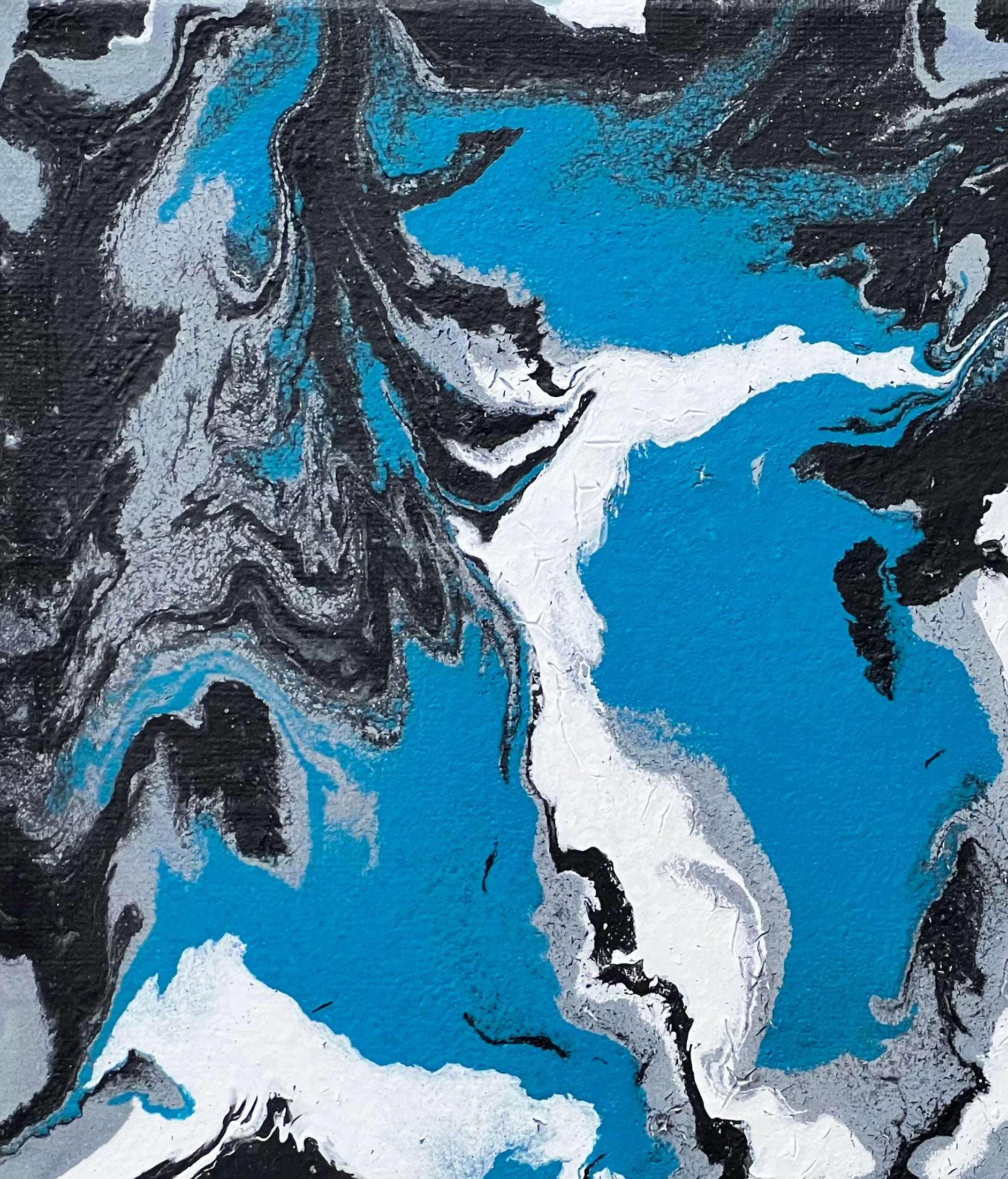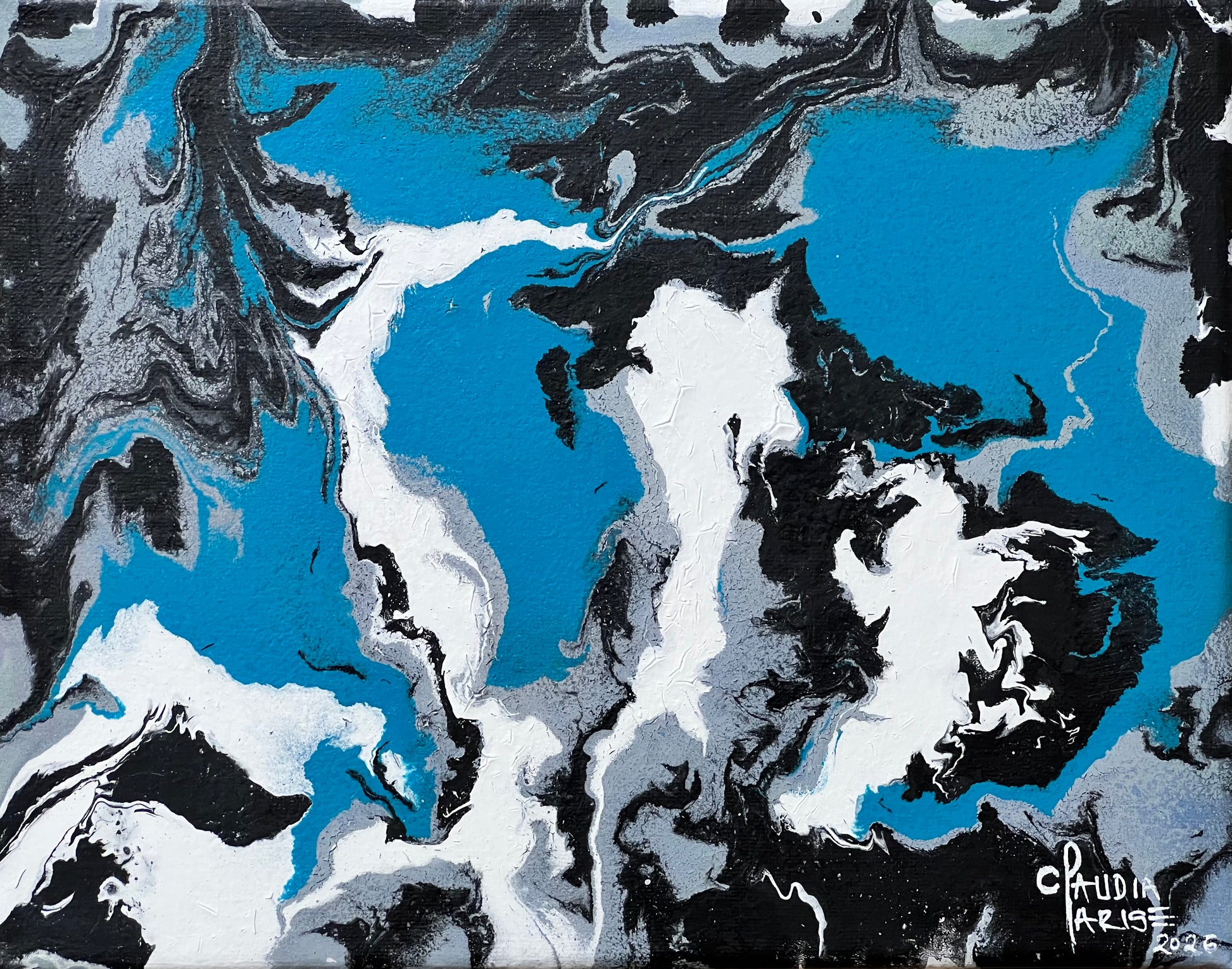 Pintura fluida acrílica sobre lienzo, 30 × 25 cm, 2026